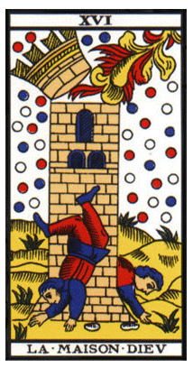 La Torre: La Torre Simboliza destrucción que llega desde el cielo. Es una energía absolutamente curativa; igual de necesario que eliminar del cuerpo lo que le enferma, es necesaria la destrucción de las relaciones y situaciones viciadas que impiden el crecimiento personal. Esto puede parecer muy violento, pero el alivio sucede inmediatamente al trauma. Esta carta no será bienvenida para aquellos que temen los cambios.